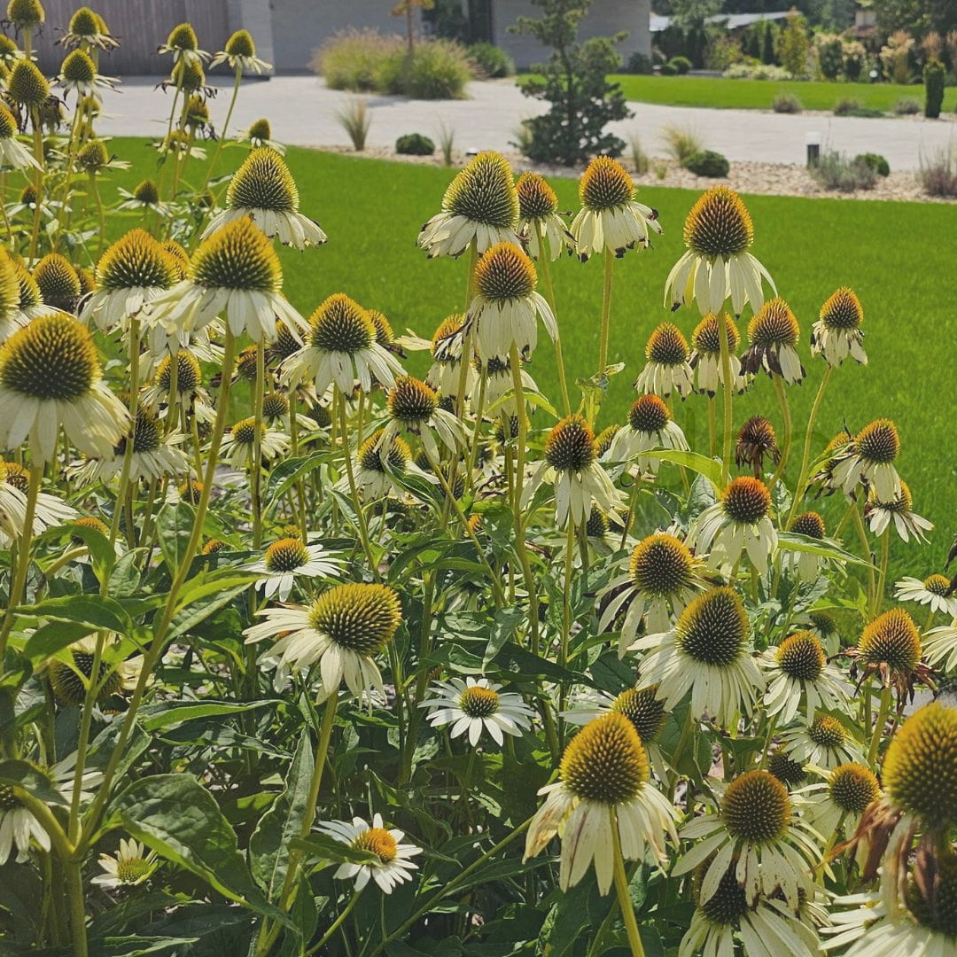 Jeżówka purpurowa 'Sombrero Blanco' to niezwykle dekoracyjna bylina, która wprowadzi do ogrodu elegancję i świeżość. Od czerwca aż do września pojawiają się na niej duże, śnieżnobiałe kwiaty z charakterystycznym, wypukłym, pomarańczowo-brązowym środkiem. Roślina tworzy zwarte kępy o wysokości do 50 cm, dzięki czemu doskonale nadaje się na rabaty, do nasadzeń naturalistycznych oraz do uprawy w pojemnikach na tarasie czy balkonie. Jeżówka najlepiej rośnie w słońcu, na lekkiej, przepuszczalnej lub przeciętnej glebie ogrodowej, która powinna być umiarkowanie wilgotna, choć dobrze znosi również krótkie okresy suszy. Bylina ta nie jest zimozielona, jednak jej wytrzymałość na mróz sprawia, że co roku niezawodnie odrasta i kwitnie obficie, przyciągając pszczoły oraz motyle.