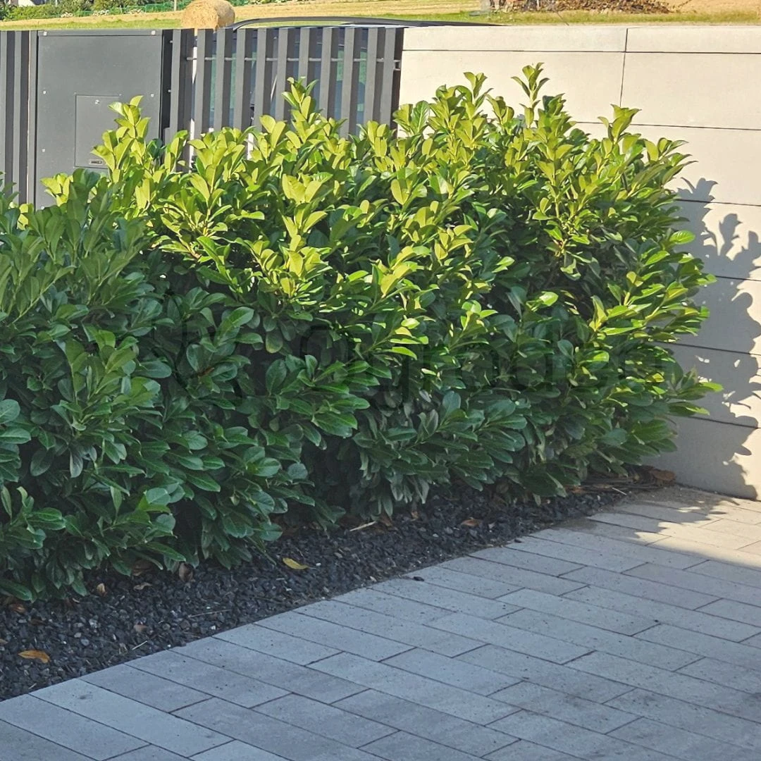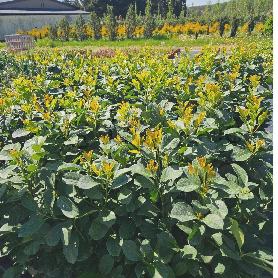 Laurowiśnia wschodnia 'Etna' (Prunus laurocerasus 'Etna') to kompaktowy, zimozielony krzew o wyprostowanym, gęstym pokroju i wyjątkowo dekoracyjnych liściach. Młode liście mają brązowo-czerwone lub pomarańczowe zabarwienie, które z czasem przechodzi w soczystą zieleń, a następnie w głęboki, ciemnozielony kolor z delikatnym połyskiem. Liście są szeroko jajowate, skórzaste, od góry błyszczące, od spodu matowe, co nadaje roślinie elegancji przez cały rok.