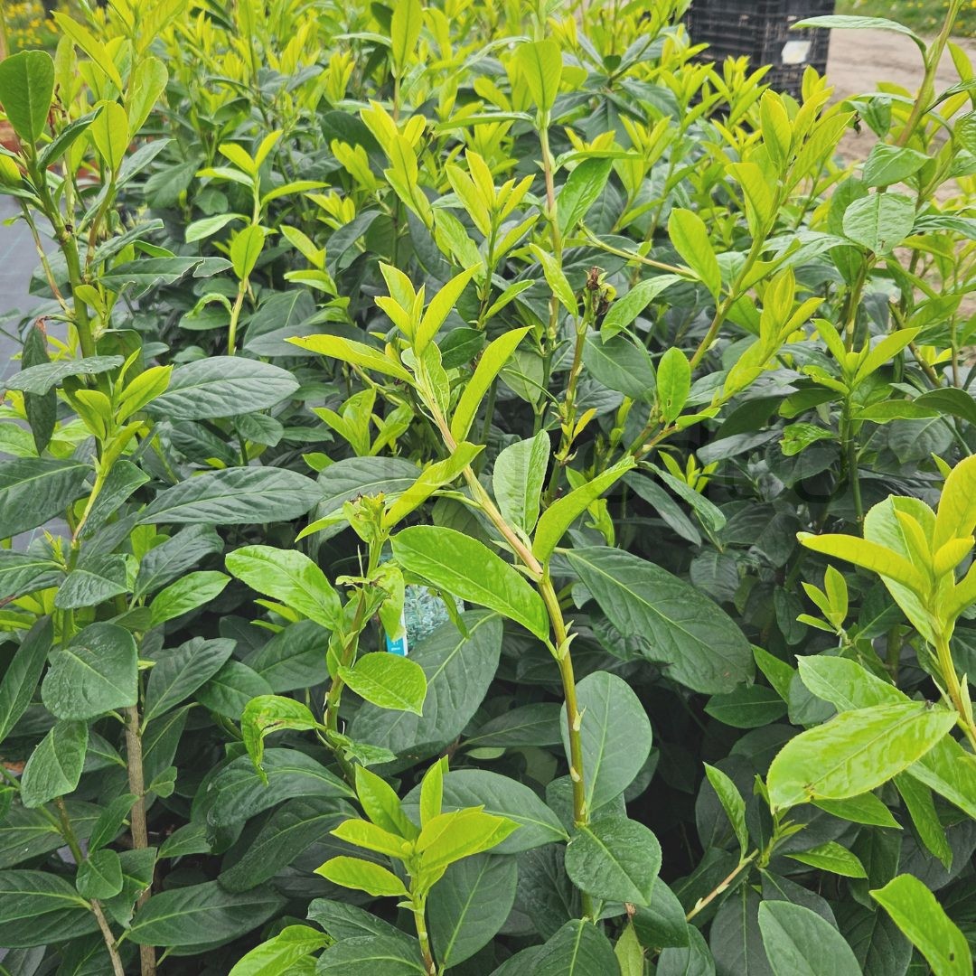 Laurowiśnia wschodnia 'Novita' (Prunus laurocerasus 'Novita') to zimozielony, silnie rosnący krzew o gęstym, szerokim pokroju i dużych, błyszczących, ciemnozielonych liściach. W sprzedaży dostępna jest w wysokości 60–80 cm, jednak docelowo osiąga 3–4 metry, a nawet więcej, jeśli nie jest regularnie przycinana. Wiosną, najczęściej w maju, pojawiają się pachnące, białe kwiaty zebrane w smukłe, pionowe grona, które przyciągają owady zapylające. Po kwitnieniu mogą pojawić się czarne, błyszczące owoce.