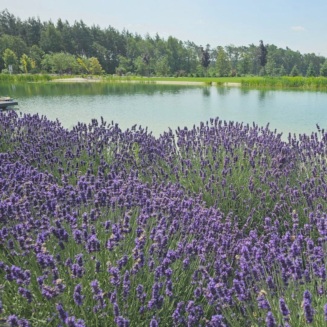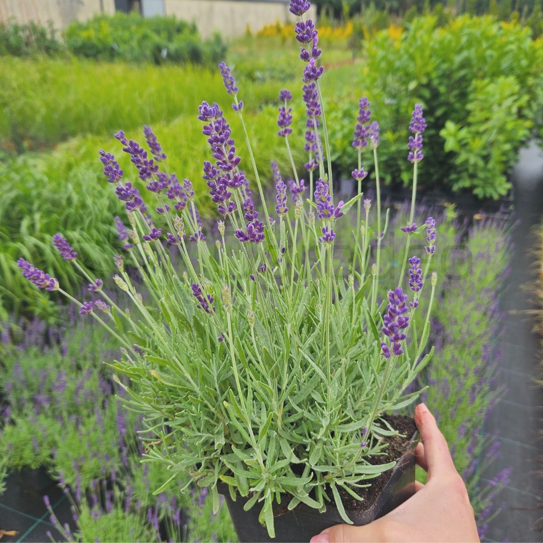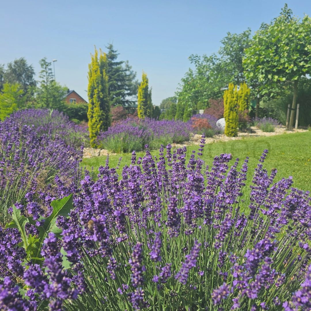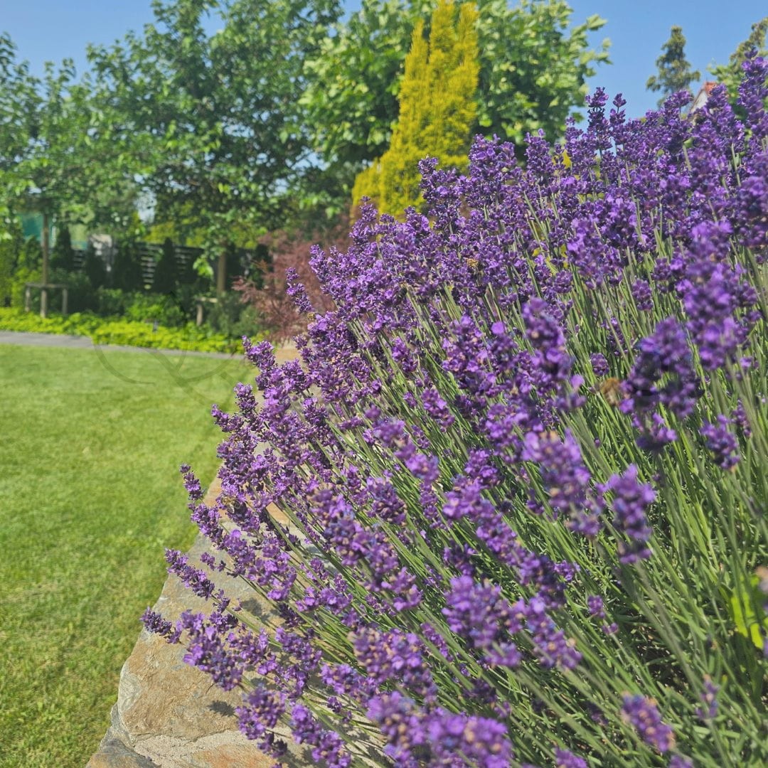 Lawenda wąskolistna 'Hidcote' (Lavandula angustifolia 'Hidcote') to wyjątkowo ceniona odmiana o zwartym, półkulistym pokroju i intensywnie pachnących, ciemnofioletowych kwiatach. Roślina dorasta do 40–50 cm wysokości, tworząc gęste, dekoracyjne kępy, które przez całe lato przyciągają pszczoły i motyle. Jej wąskie, srebrzystozielone liście są zimozielone, dzięki czemu lawenda prezentuje się atrakcyjnie przez cały rok.
