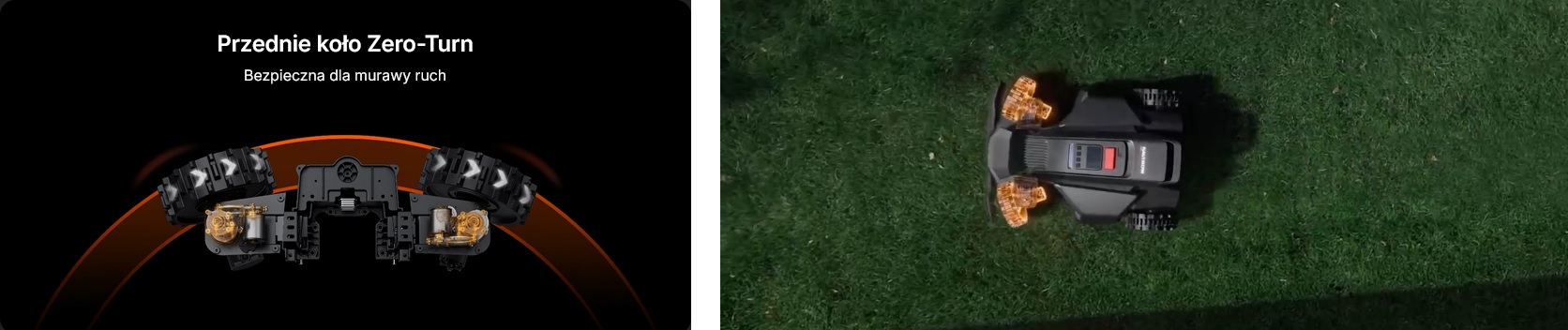 To system pozwalający robotowi skręcać w miejscu bez uszkadzania trawnika, co zwiększa precyzję koszenia.